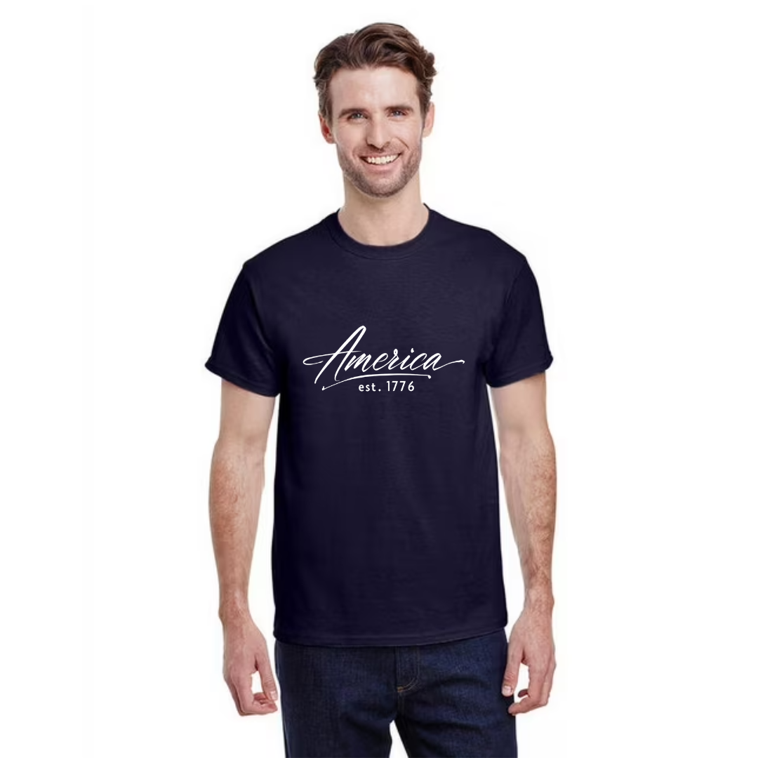 Simple, bold, and timeless—this design marks the birth of a nation and the legacy that followed. With a clean, classic look, it pays tribute to the founding of America in 1776, a year that sparked freedom and defined history. Wear it as a symbol of enduring values, proud heritage, and the unwavering spirit that continues to shape the nation.