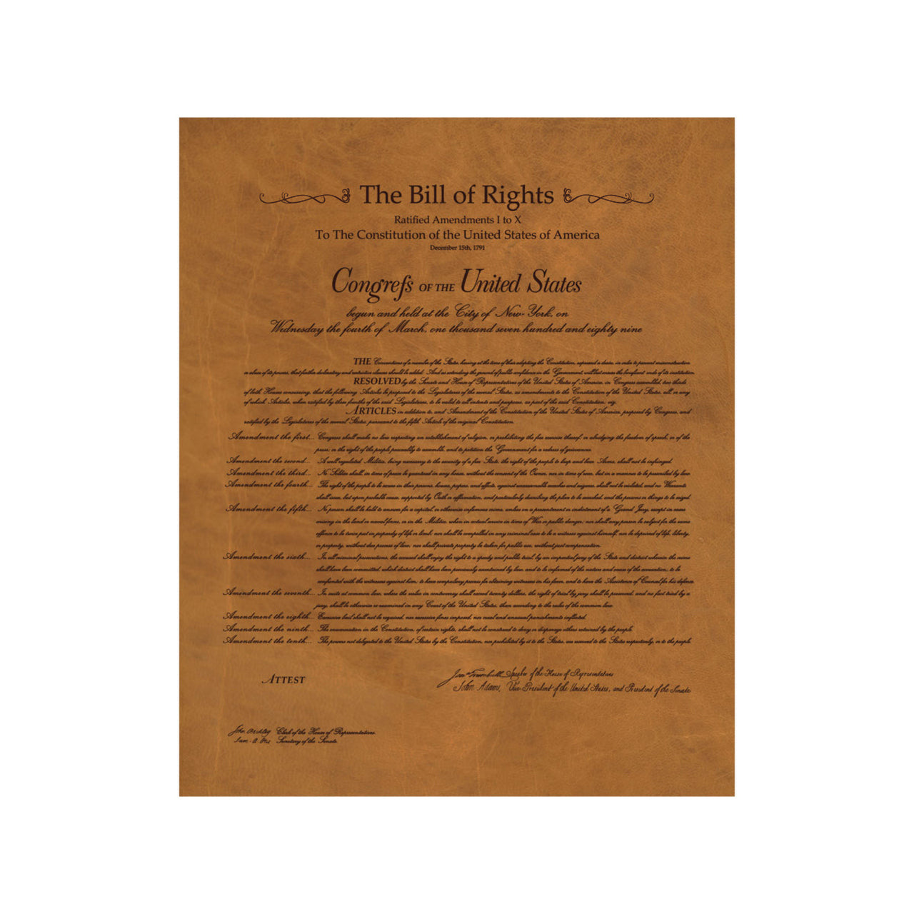 Now you can display the Bill of Rights in a beautiful, unique way: burned into an independent thick, solid, smooth piece of full grain Saddleback leather!